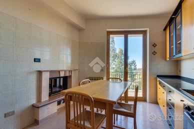 L'ingresso ci immette, frontalmente, nel salone, mentre accanto trova spazio la cucina di medie dimensioni, impreziosita da un piacevole termo-camino che unisce la praticità dell'impianto di riscaldamento autonomo al fascino senza tempo del fuoco che arde nei momenti destinati al relax della famiglia.