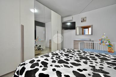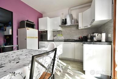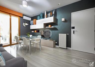 L'immobile proposto ci accoglie in un ampio soggiorno con camino in bioetanolo, creando un'atmosfera accogliente, per poi proseguire nella cucina separata. I due ambienti offrono due balconi, ottimi sfoghi esterni che donano luminosità.
