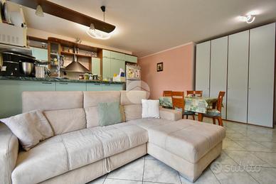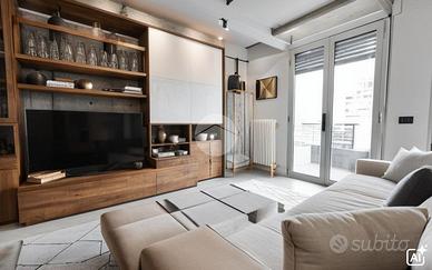 L'ingresso ci accoglie in un'ampia zona giorno di circa 30 mq, caratterizzata da soggiorno con angolo tv e cucina a vista dotata di isola. L'ambiente è reso luminoso grazie alla presenza di una finestra e portafinestra con accesso diretto al balcone.