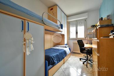 Un disimpegno ci accompagna nella zona notte, composta da una camera matrimoniale di circa 14 mq con accesso al balcone ed una camera singola di circa 10 mq.