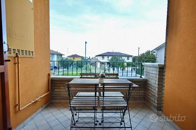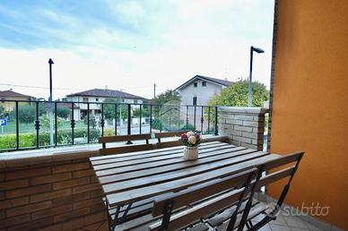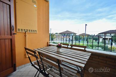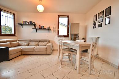 Da ingresso comune per due unità, si raggiunge l'appartamento situato al primo piano, dove si apre un ampio soggiorno con affaccio su una funzionale loggia per godere momenti di relax. Il piano si completa con la cucina abitabile, separata dal soggiorno, la camera matrimoniale che gode di un balcone condiviso con la cucina ed un bagno finestrato dotato di box doccia.