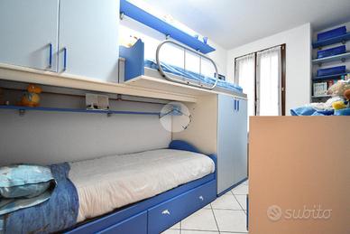 La zona notte comprende una camera matrimoniale con balcone, una camera singola e un bagno finestrato dotato di box doccia e angolo lavanderia.