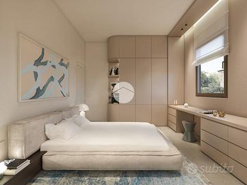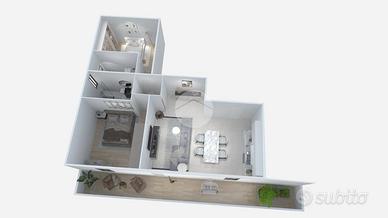 SANTARCANGELO, zona stazione: in un piccolo contesto condominiale di 4 unità abitative, in posizione comoda e vicino a tutti i principali servizi, appartamento di nuova ristrutturazione al piano primo con cantina e posto auto privato. L'immobile presenterà delle rifiniture moderne e di ultima generazione progettate per garantire un elevato risparmio energetico e rispetto per l'ambiente. Sarà dotato di impianto fotovoltaico e pannelli solari di 3 kwh, riscaldamento a radiatori, predisposizione dell'aria condizionata, caldaia a condensazione ed infissi in PVC in triplo vetro con isolamento termo acustico e anti sfondamento e infine tapparelle elettriche. L'ingresso dell'appartamento si apre al piano primo su un soggiorno ampio e luminoso con angolo cottura di circa 31 mq, caratterizzato da un accesso diretto a un balcone di 17 mq, ideale come spazio esterno vivibile. Attraverso un comodo disimpegno si accede alla zona notte, composta da due camere da letto di 12 e 15 mq, di cui una con bagno en suite, oltre a un bagno padronale finestrato. L'unità proposta si conclude con una cantina di 23 mq al piano seminterrato e un posto auto privato al piano terra. Ideale per chi è alla ricerca di un'abitazione recente, efficiente e ben posizionata, in una zona strategica e servita. Per qualsiasi informazione potete contattarci o mandare un messaggio WhatsApp al nostro numero di telefono oppure passare a trovarci in ufficio, ci troviamo in via Ugo Braschi, 57, a Santarcangelo di Romagna pronti ad accogliervi!