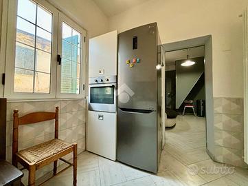 Santo Stefano di Magra - Al piano terra di soluzione bifamiliare, proponiamo appartamento di tre locali disposto su due livelli. Al piano terra si sviluppa la zona giorno composta da un luminoso soggiorno arredato con divano e mobile a parete e da una cucina abitabile dotata di ogni comfort. Il bagno è finestrato e dotato di box doccia. Tramite sia scala esterna che scala interna si raggiunge il primo piano dove si sviluppa la zona notte con un'ampia camera matrimoniale e una seconda cameretta, ove è possibile ricavare una cabina armadi o un secondo bagno grazie alla presenza degli scarichi al piano. L'appartamento si presenta in buono stato, il piano terra è stato di recente ristrutturato, il piano primo invece necessita di qualche lavoro di manutenzione. L'esposizione è ottimale per tutto l'arco della giornata. Possibilità di acquisto con fondi pertinenziali.