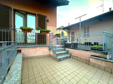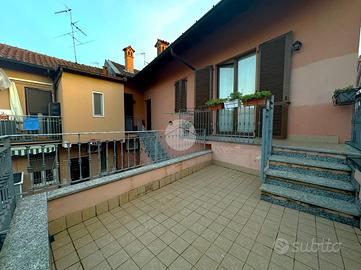 Santo Stefano Ticino: nel cuore del Centro Paese. In posizione ottimale dalla quale raggiungere, anche a piedi, tutti i servizi di prima necessità, negozi, scuole e la Stazione Ferroviaria, ideale per raggiungere Milano in pochi minuti grazie al passante. All'interno di un contesto di corte, ben tenuta e di poche unità abitative, senza amministrazione condominiale. Abitazione posta al primo piano, quasi completamente indipendente sui 4 lati, tripla esposizione e nessun'altro alloggio al piano superiore. Tramite scala indipendente in muratura, si accede al balconcino d'ingresso; un portoncino blindato ci introduce all'interno dell'appartamento. La zona giorno si compone di uno spazioso soggiorno, ampio e facilmente arredabile; la presenza di ben 3 finestre, su 2 lati espositivi, consente un notevole afflusso di luce oltre ad un'ottima areazione. La cucina si presenta estremamente abitabile, adatta anche ad un nucleo familiare numeroso o in presenza di diversi commensali; oltre alla finestra è presente una porta finestra dalla quale si accede, tramite un primo balcone, ad un comodo e generoso terrazzo, ideale per i più diversi utilizzi. Il disimpegno notte ci conduce alle 2 godibili camere da letto ed al bagno, accessoriato da vasca da bagno utlizzabile anche come doccia. Al fine di evitare impegnative e costose munutenzioni tutte le persiane della casa sono in PVC, così come le finestre; quest'ultime sono dotate di doppi vetri, ideali per una maggior isolamento acustico e termico. Tutte le utenze della casa sono completamente autonome con conseguente totale indipendenza nei consumi e relativi costi. Compreso nel prezzo è incluso un spazio privato, posto sotto il terrazzo, destinabile ad autorimessa privata.