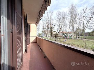Santo Stefano Ticino: In posizione centrale con possibilità di raggiungere, anche a piedi, tutti i servizi essenziali comprese le scuole e la Stazione Ferroviaria. In complesso condominiale, immerso in un lussureggiante parco, con piante ad alto fusto, senza barriere architettoniche e dotato di ascensore fin dal piano cantine. L'appartamento beneficia di una notevole luminosità ed areazione, il tutto grazie alla tripla esposizione. Dal portoncino blindato d'ingresso si accede direttamente al soggiorno. La sala si presta tranquillamente ad ogni tipo di arredo, grazie ai suoi spazi generosi ed alle pareti lineari. Dalla porta finestra si accede ad un comodo balcone, affacciato sull'antistante parco. La cucina gode di dimensioni davvero generose ed estremamente abitabili anche in presenza di numerosi commensali; la porta finestra presente permette l'accesso al balcone ed al locale caldaia e rispostiglio esterno. Il disimpegno ci conduce alla zona notte; qui troviamo una camera matrimoniale dalle dimensioni ragguardevoli ed una cameretta anch'essa particolarmente spaziosa con uscita sul balcone. Il bagno beneficia della presenza sia della doccia che della vasca. L'appartamento è dotato di impianto di riscaldamento autonomo con termostato e caldaia privati, mentre gli infissi sono in legno e doppi vetri con inferriate apribili sulle porte finestra. Inclusi nel prezzo sono compresi sia la cantina che il box autorimessa.