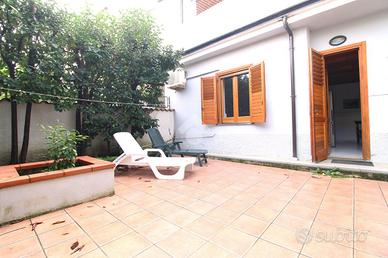 Sapri, l'appartamento al piano terra offre un ingresso indipendente e si presenta come una soluzione confortevole e funzionale. Internamente, troviamo una spaziosa cucina abitabile, perfetta per cene e momenti conviviali, due camere da letto matrimoniali con finestra, un bagno con doccia e un ripostiglio utile per riporre abiti e oggetti vari. A completare la proprietà un ampio giardino pavimentato, ideale per momenti di relax all'aperto, dotato di una comoda cucina esterna coperta, perfetta per grigliate e pranzi all'aperto. La posizione è privilegiata, con il mare raggiungibile a piedi, rendendo questa soluzione ideale per chi desidera vivere vicino al mare senza rinunciare a comfort e privacy.