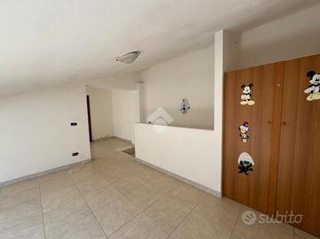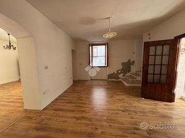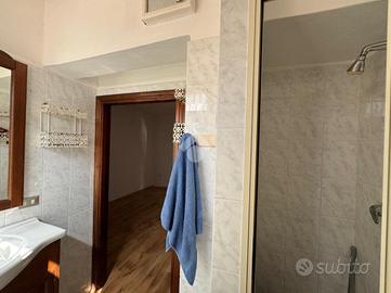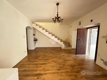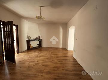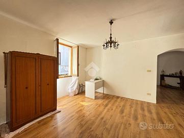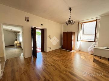 Salendo al primo piano troviamo l'ingresso dell'abitazione che ci accoglie con un ampio soggiorno luminoso, una cucina abitabile, un bagno finestrato completo di box doccia ed un ripostiglio.