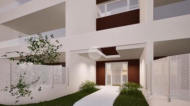 Al primo piano, elegante appartamento con tripla esposizione, si distingue per l'architettura moderna e i materiali di alta qualità. Si compone di un ampio soggiorno e cucina in open-space dal quale si accede ad un ampia terrazza abitabile di oltre 34 mq. Tramite disimpegno si accede alla zona notte, la quale comprende due camere da letto, una delle quali con bagno en-suite e cabina armadio; bagno principale ed una seconda terrazza di circa 8 mq.