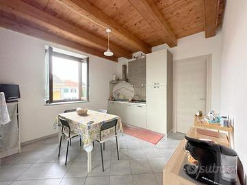 SAVIGLIANO - Al primo piano di un contesto di recente ristrutturazione e di sole due unità abitative. L'ingresso alla proprietà avviene, mediante porta blindata, sulla cucina abitabile. Il soggiorno è luminoso grazie alla presenza della portafinestra con sfogo esterno sul balcone di pertinenza. Completa il piano il servizio dotato di doccia. Tramite la scala interna posta in soggiorno è possibile raggiungere il piano superiore dove prende spazio la camera da letto. A caratterizzarla i soffitti con travi in legno a vista ed il secondo servizio. Ultima l'intera proprietà il terrazzo di ampie dimensioni. Il riscaldamento è autonomo a pavimento e le spese condominiali minime. L'immobile è attualmente locato con contratto transitorio a 450€ mensili. Ogni agenzia ha un proprio titolare ed è autonoma. - Le presenti informazioni non costituiscono elemento contrattuale.