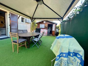 Entrando nella casa veniamo accolti da una luminosa zona giorno composta da un comodo soggiorno angolo cottura e un bagno di servizio. Tramite una porta finestra presente in soggiorno, accediamo al giardino privato.
