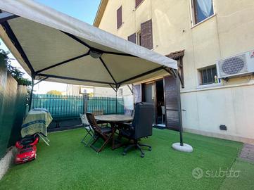 Proponiamo in vendita un appartamento disposto su due livelli, con posto auto privato e giardino.