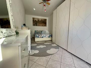 Da una scala interna, saliamo al primo piano e accediamo alla zona notte. Un disimpegno ci accompagna alle due camere da letto, la prima camera da letto matrimoniale e la seconda camera servita da balcone privato.