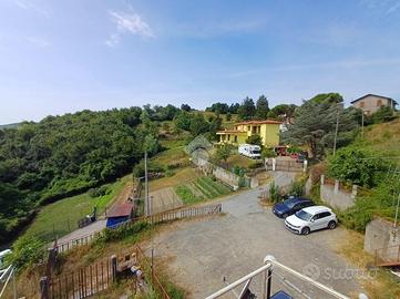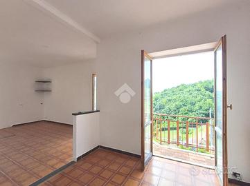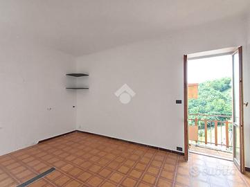 SAVIGNONE - Via Generale Strata Siamo nella parte alta di Savignone, a circa un km dal centro paese, dai negozi, dalle scuole e da tutti i servizi essenziali e dai mezzi pubblici. L'immobile è posto al secondo piano di una piccola palazzina degli anni '70 ed ha accesso indipendente tramite portoncino privato posto al piano primo. Dal portone, una scala a chiocciola, con scalini in marmo, conduce al piano superiore ed alla parte abitativa principale; al suo interno la disposizione è la seguente: Un piccolo disimpegno con annesso corridoio ci portano in primo luogo alla zona notte composta da una camera matrimoniale e dall'adiacente bagno provvisto di finestra e vasca. Successivamente la zona giorno si apre in un grande locale doppio in stile 'open space', separato solo da un piccolo muretto basso dove sono comprese da un lato un ampia cucina abitabile e dall'altro lato il soggiorno. Da ambo gli ambienti è possibile accedere, tramite due porta-finestre, al balcone di proprietà. Esposto verso Sud l'immobile gode di ottima luminosità in tutte le ore del giorno, ed anche se da risistemare internamente, il riscaldamento è termo-autonomo tramite calderina a metano e le spese condominiali risultano molto contenute. Facilità da posteggio grazie all'ampia area parking scoperta riservata ai condomini posta di fronte allo stabile.
