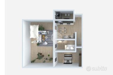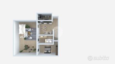 L'appartamento è composto da ingresso, zona giorno con angolo cottura, due camere da letto, bagno finestrato e ampio terrazzo.