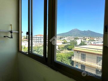La cucina abitabile, spaziosa e funzionale, è dotata di un balcone verandato dal quale si gode una splendida vista sul Vesuvio. L'ambiente è arricchito da un'ulteriore ampia finestra, che lo rende arioso e accogliente. Adiacente troviamo l'ampio soggiorno di ben 30 mq, rappresenta il vero cuore della casa: uno spazio generoso e versatile, perfetto per accogliere familiari e amici, con doppio affaccio grazie alla presenza sia di una finestra che di un balcone, che garantiscono luminosità e comfort. Entrambi gli spazi sono adiacenti e facilmente riconfigurabili in un unico grande open space, ideale per chi desidera un ambiente moderno, arioso e multifunzionale.