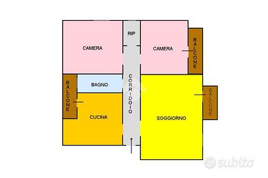 L'ingresso introduce in un ampio disimpegno, che funge da snodo centrale verso tutti gli ambienti della casa, garantendo privacy e funzionalità.