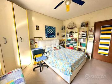 Un corridoio separa la zona giorno da quella notte, garantendo privacy e silenzio. Le due camere da letto, entrambe molto spaziose e dotate di finestra, offrono la possibilità di arredarle con facilità e versatilità, ideali sia per famiglie che per chi necessita di una stanza aggiuntiva come studio o camera degli ospiti.