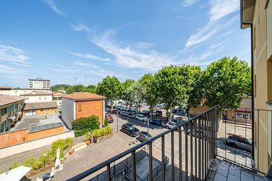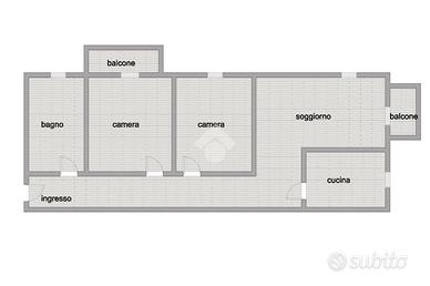 L'abitazione attualmente affittata, è composta da: ingresso, soggiorno con balcone, cucina abitabile, due camere da letto matrimoniali di cui un con balcone e bagno. Al piano terra cantina e all'ultimo piano sottotetto di proprietà.