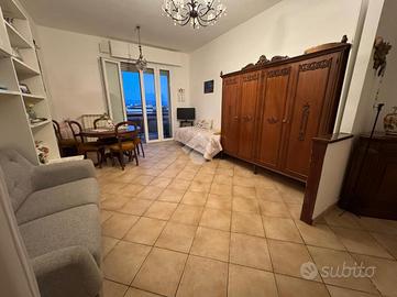 L'ingresso si apre su un ampio soggiorno, un ambiente caldo e confortevole, perfetto per la vita quotidiana e per accogliere gli ospiti. La grande portafinestra conduce a un balcone con affaccio panoramico, che regala una piacevole vista aperta e consente di godere di momenti di relax all'aria aperta.