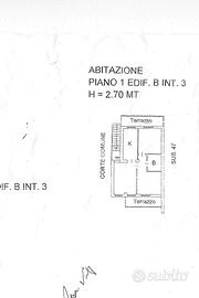 Con ingresso indipendente, l'appartamento si sviluppa su unico livello ed è composto da: salone, cucina abitabile, camera da letto matrimoniale, cameretta, disimpegno, bagno con vasca e 2 balconi, uno accessibile dal salone e dalla cameretta, l'altro dalla cucina e dalla camera.