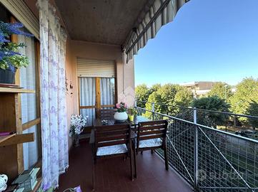 L'appartamento è composto da soggiorno con accesso a un balcone vivibile, cucina, due bagni finestrati, una camera matrimoniale con balcone privato e una seconda camera da letto.