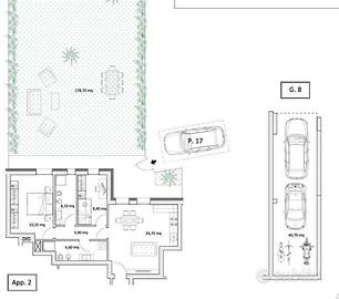 APPARTAMENTO A2 - Piano Terra con Giardino Privato Elegante bicamere di 80 mq commerciali, con zona giorno open-space, due bagni e due camere. Spazio esterno esclusivo di 178 mq di giardino, perfetto per chi cerca relax e privacy. Completano la proprietà un garage doppio di 40 mq e posto auto scoperto. Riscaldamento a pavimento, classe energetica prevista A, finiture personalizzabili da capitolato. A soli 700 m dal centro di Schio, in zona tranquilla e ben collegata.