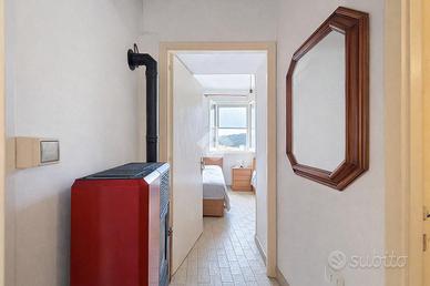 Proseguendo attraverso il disimpegno centrale, dove è stata strategicamente posizionata una stufa a pellet per riscaldare uniformemente l'ambiente, si accede alla zona notte.