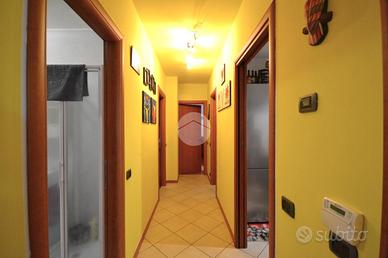 In contesto residenziale tranquillo e ben curato, a pochi passi dal centro del paese, proponiamo in vendita un trilocale al primo piano di una palazzina servita da ascensore. L'ingresso si apre direttamente sul soggiorno, ampio e ben illuminato grazie alla favorevole esposiziona sud, con accesso a un balcone condiviso con la cucina abitabile, spaziosa e funzionale. Un comodo disimpegno conduce alla zona notte, composta da una camera matrimoniale e da una seconda camera, entrambe dotate di balconi privati, che regalano ulteriore luce e vivibilità agli ambienti. L'immobile è completo di doppi servizi: uno finestrato dotato di vasca e l'altro cieco dotato di doccia. L'appartamento dispone di dotazioni che ne aumentano il comfort: aria condizionata, riscaldamento autonomo, inferriate di sicurezza, tende da sole e zanzariere. Compresi nel prezzo la cantina e il box.