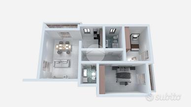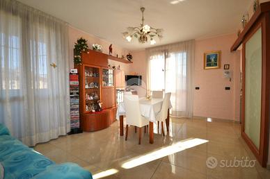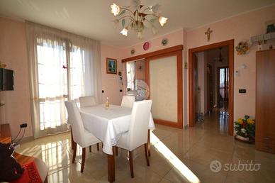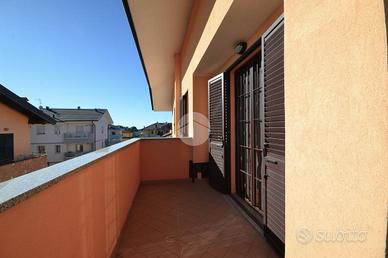 LUMINOSO ULTIMO PIANO IN CLASSE ENERGETICA A4 - A pochi passi dal centro del paese, in una palazzina di recente costruzione realizzata secondo le più moderne normative sul risparmio energetico, trilocale con doppi servizi posto al secondo e ultimo piano servito da ascensore. L'ingresso si apre sul soggiorno, resa luminosa grazie alle ampie porta-finestra dalle quali è possibile accedere allo sfruttabile terrazzino coperto. La cucina è abitabile e rimane separata rispetto alla zona giorno. La zona notte, ben distribuita, offre due camere da letto, servite da balcone, e doppi servizi: uno finestrato con vasca e uno cieco dotato di pratica doccia. Il riscaldamento a pavimento offre la possibilità di arredare tutte le pareti. L'appartamento si presenta in ottime condizioni e dispone di accessori che ne aumentano il comfort abitativo, tra cui l'impianto di aria condizionata, le zanzariere, le inferriate e l'allarme perimetrale. Completa la soluzione la cantina. Ampio box proposto a parte a 20.000€ La palazzina è stata recentemente oggetto di interventi di riqualificazione che hanno migliorato ulteriormente l'efficienza energetica e il valore dell'immobile.