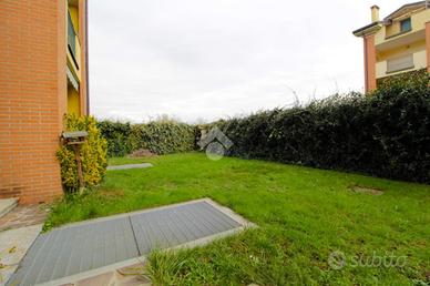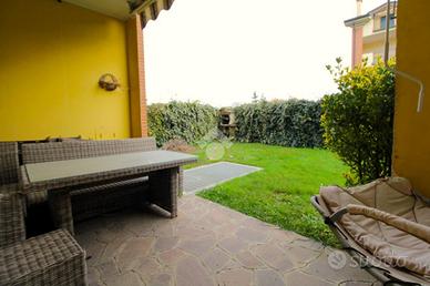 A pochi passi dal centro del paese, in un contesto residenziale tranquillo e ben curato realizzato nel 2006, proponiamo appartamento posto al piano terreno con giardino privato in palazzina dotata di ascensore e priva di barriere architettoniche. L'immobile si distingue per la sua luminosità: la zona giorno, infatti, è esposta alla luce naturale e si apre direttamente sul giardino privato di circa 140 mq. dove poter trascorrere piacevoli momenti all'aria aperta durante la bella stagione. La cucina, a vista, è perfettamente integrata con il soggiorno, creando un ambiente moderno e funzionale. Da un pratico disimpegno, facilmente arredabile, si accede alla zona notte composta dalla camera matrimoniale spaziosa e accogliente e dal bagno finestrato dotato di vasca. A completare la soluzione anche uno sfruttabile locale da adibire a cameretta. Il riscaldamento è autonomo con caldaia a condensazione, e l'appartamento è dotato di infissi in legno doppio vetro e impianto di allarme. Incluso nel prezzo una comoda cantina e il box-autorimessa. Per appuntamenti i nostri incaricati sono disponibili dal lunedì al venerdì dalle ore 9.00 alle 12.30 e dalle 14.30 alle 20.00 e il sabato dalle 9.00 alle 12.30 e dalle 14:30 alle 19:00. A vostra disposizione uno staff di consulenza creditizia in grado di proporvi il mutuo o il finanziamento più adatto alle vostre possibilità. Contattateci per fissare un incontro gratuito nei nostri uffici. Ogni agenzia ha un proprio titolare ed è autonoma.