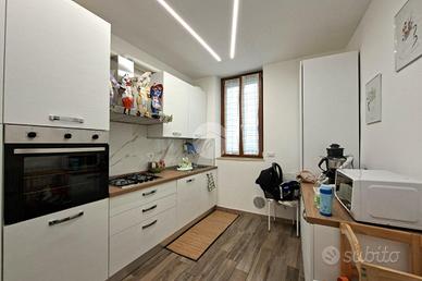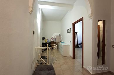 In caratteristico contesto cortilizio nel centro del paese, proponiamo trilocale disposto su due livelli abitativi. L'ingresso si apre direttamente sull'accogliente soggiorno, seguito da una spaziosa cucina abitabile e da un bagno finestrato completo di doccia. Una scala a chiocciola conduce al piano superiore, dove si sviluppa la zona notte composta da una confortevole camera matrimoniale, una cameretta doppia e un secondo bagno di servizio. L'immobile si presenta in ottime condizioni, ristrutturato e dotato di impianto di condizionamento, pronto per essere abitato senza necessità di interventi. Completa la proprietà un rustico disposto su due livelli, utilizzabile come autorimessa, deposito o spazio multifunzionale. La posizione centrale consente di raggiungere comodamente tutti i principali servizi. La soluzione è ideale per chi desidera vivere in un contesto tranquillo con il vantaggio di spese di gestiore irrisorie.