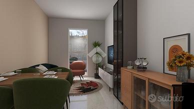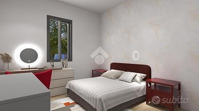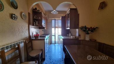 Entrando troviamo un ingresso, un soggiorno ampio con accesso al primo balcone, una cucina con un altro balcone, un ripostiglio, un bagno, camera matrimoniale e cameretta.