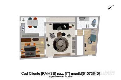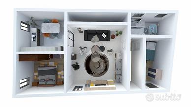 Questo è composto da un ampio soggiorno, una cucina abitabile con ripostiglio soppalcato, una camera matrimoniale, un bagno con finestra e vasca e una cameretta.