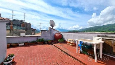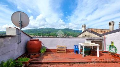 Dal disimpegno, tramite una scala a chiocciola, si arriva al terrazzo panoramico con un comodo ripostiglio nel sottotetto.