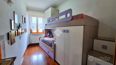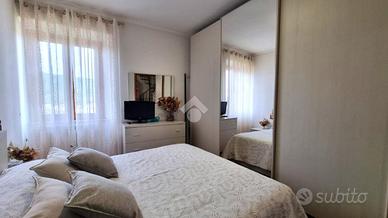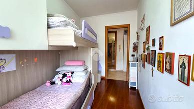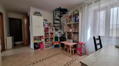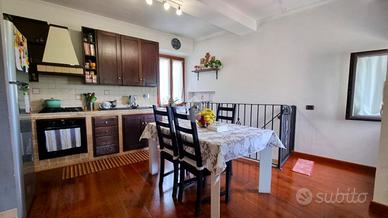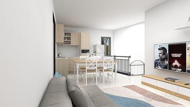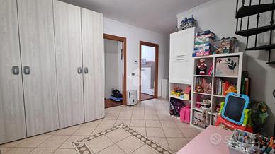 Entrando tramite una scala interna si arriva all'open space composto da cucina abitabile e soggiorno. Ben divisa da una porta a vetri scorrevole abbiamo la zona notte composta da disimpegno, camera matrimoniale, cameretta, bagno con doccia e finestra e angolo lavanderia.