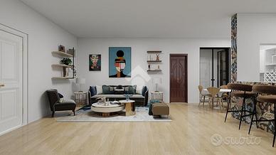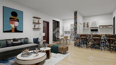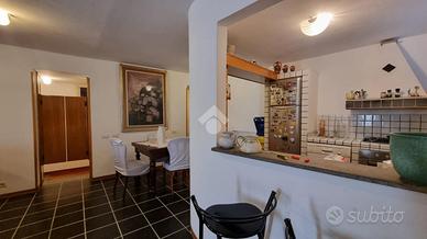 L'appartamento all'ingresso è composto da un ampio soggiorno con angolo cottura in muratura. La zona notte è ben separata dalla zona giorno tramite un corridio con armadio a muro ed è composta da due camere matrimoniali e un bagno con finestra e doccia.