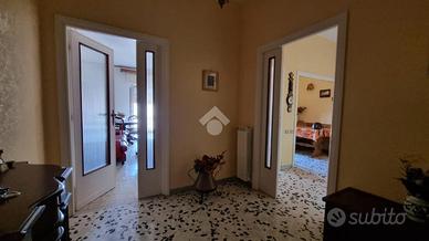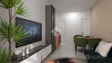 Entrando troviamo un ingresso, un soggiorno ampio con accesso al primo balcone, una cucina con un altro balcone, un ripostiglio, un bagno, camera matrimoniale e cameretta.