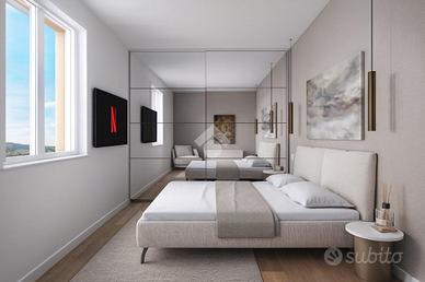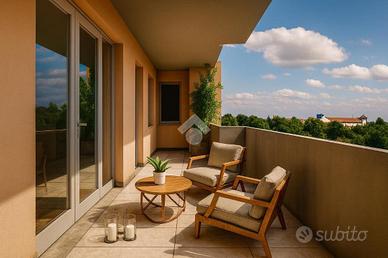 Entrando, troviamo la zona giorno, composta da un ampio soggiorno con cucina a vista, che affacciano su un grande terrazzo, ideale per trascorrere piacevoli momenti di relax all'aperto.