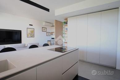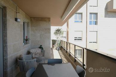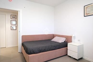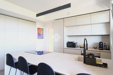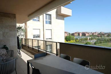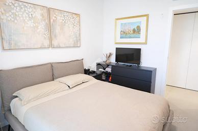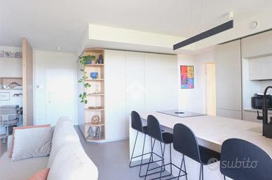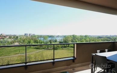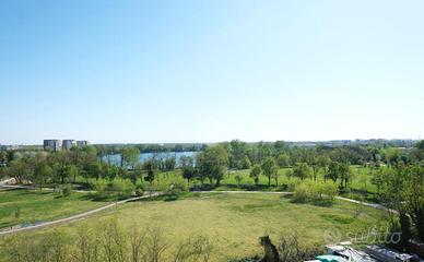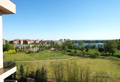 Proponiamo un appartamento panoramico nel contesto del Centroparco, uno dei più belli ed esclusivi di Segrate. L'immobile offre una metratura di 100mq ed è posto al sesto piano di una delle poche palazzine che affaccia sul laghetto: una vista panoramica che regala luminosità a tutti gli ambienti e tanta voglia di godersi il profondo e lungo terrazzo con tende da sole automatizzate, ideale per momenti di relax e convivialità. Grazie alla generosa metratura del terrazzo è stato possibile ricavare anche uno spazio aggiuntivo loggiato, utile come ripostiglio. La disposizione interna prevede una separazione netta tra la zona living, caratterizzata da un moderno open-space con accesso al terrazzo e da un angolo studio, e la zona notte accompagnata da armadiature su misura poste nel disimpegno che ottimizzano gli spazi, due camere da letto e due bagni, uno dei quali finestrato con box doccia. L'appartamento è inoltre dotato di allarme volumetrico e perimetrale oltre al condizionamento autonomo, assicurando un clima ideale in ogni stagione. Completano la proprietà un box auto e una cantina. All'interno del condominio è presente una palestra, utilizzabile da tutti i condomini. L'edificio, costruito nel 2019, si trova all'interno di un complesso molto curato che offre un servizio di portineria. La vicinanza con il Centroparco di Segrate, lo rende la soluzione ideale per le famiglie con bambini.