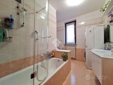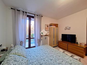 L'immobile si presenta in ottime condizioni e gode di rifiniture recenti e ben tenute che non necessitano di alcuna manutenzione, pertanto è abitabile fin da subito. Varcando il portoncino blindato ci accoglie l'ingresso che si affaccia direttamente sulla zona giorno, un unico luminoso ambiente che ospita sia il living che l'angolo cottura ed offre l'accesso al giardino privato, in parte piastrellato così da poter posizionare un tavolo con sedie, per vivere momenti di convivialità con amici e famiglia all'aperto. La zona notte dispone di due camere da letto, entrambe capaci ad accogliere un arredo matrimoniale, e del bagno, ampio, finestrato e con vasca. La proprietà si completa con il box doppio in lunghezza.