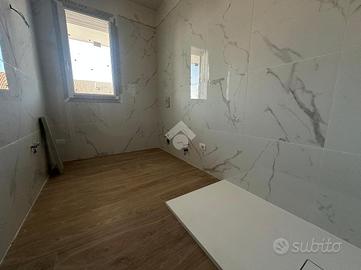 L'abitazione si compone di una luminosa zona giorno con cucina a vista, disimpegno, camera matrimoniale, cameretta e doppi servizi.