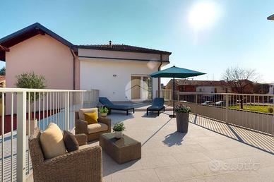 ENTRA, MISURALA, VIVILA, AMALA La casa dei tuoi sogni a portata di click. La modalità di visione è molto sull'icona 360° che trovi al di sotto della foto. PROVALO ADESSO Appartamento in villa di sole 4 unità immobiliari! Nel cuore di in zona Don Orione una delle più richieste di Seregno, si tratta di un elegante trilocale con un'immenso terrazzo privato e uno spazioso balcone, perfetto per chi desidera uno spazio esterno esclusivo senza rinunciare alla comodità della città. L'appartamento si trova all'interno di un edificio di nuova costruzione in classe energetica A2, garantendo il massimo del comfort abitativo e un notevole risparmio energetico. L'ingresso si apre su una luminosa zona giorno con cucina a vista, caratterizzata da finiture moderne e materiali di alta qualità. Il gres porcellanato effetto raffinato riveste i pavimenti, mentre gli infissi in PVC a doppia camera con vetri basso emissivi assicurano un perfetto isolamento termico e acustico. La zona notte comprende due spaziose camere matrimoniali e un bagno con doccia Ultra Flat, sanitari sospesi Ideal Standard e rubinetteria di design. Dotato di sottotetto molto ampio, un grande vantaggio è la possibilità di trasformarlo in uno spazio multifunzionale, adattandolo alle proprie esigenze. L'immobile è dotato di impianto di riscaldamento e raffrescamento a pavimento con deumidificazione indipendente, predisposizione per impianto di antifurto e tapparelle automatizzate. La sicurezza è garantita da un portoncino blindato classe 3 con serratura di sicurezza e isolamento acustico fino a 45 dB. Il videocitofono touch e la predisposizione per il cablaggio dati e TV/SAT in ogni ambiente aggiungono un ulteriore livello di comodità. Il terrazzo privato ampissimo e il balcone spazioso rappresentano un valore aggiunto, ideale per rilassarsi all'aria aperta, organizzare cene con amici. Box auto di 15 mq a parte al prezzo di €25.000 Un'opportunità unica per chi cerca un'abitazione moderna, efficiente ma se