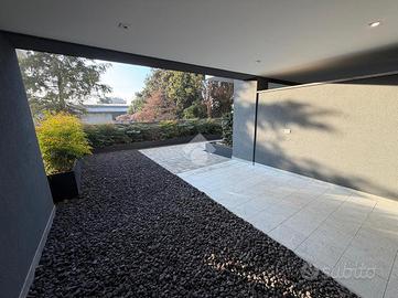 La zona giorno e le camere si affacciano su un giardino privato di circa 71 mq, arricchito da una parte porticata di circa 43 mq, perfetta per pranzi all'aperto e momenti di relax in piena privacy.