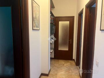 VIA CARLO MARX - All'interno di un contesto condominiale appena ristrutturato nelle parti comuni, con parti in Klinker e parti con cappotto esterno, servito da doppio ascensore, proponiamo in vendita ampio e luminoso 3 locali posto ad un piano alto, composto da ingresso, soggiorno, cucina abitabile, doppi servizi entrambi finestrati, 2 camere da letto, 2 balconi, ripostiglio e cantina. Internamente l'appartamento è in buone condizioni generali e non presenta quindi la necessità di una ristrutturazione immediata. Gli infissi sono in PVC con doppio vetro, la pavimentazione è in marmo nella zona notte e parquet nelle 2 camere ed è presente l'aria condizionata. Completa la soluzione un comodo box raggiungibile comodamente con l'ascensore in vendita ad euro 25.000,00. Libero al rogito.