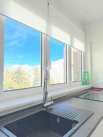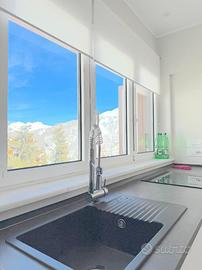 Sestriere - Inserito all'interno del condominio denominato 'Le Logge 1', situato fronte piste e posto al secondo piano con ascensore. L'ingresso all'appartamento avviene direttamente sul disimpegno che conduce all'ampio luminoso soggiorno dotato di divano matrimoniale e cucina lineare a vista dotata di forno, forno a microonde e piastra ad induzione. La camera matrimoniale è resa luminosa grazie all' ampia porta-finestra che da su un balconcino. Nella seconda camera è situato un letto a castello. Il bagno ristrutturato è dotato di box doccia, specchio antiappannamento. Nel corridoio si trova uno spazioso ripostiglio. Completa la soluzione un terrazzino con accesso dal soggiorno ed una cantina.