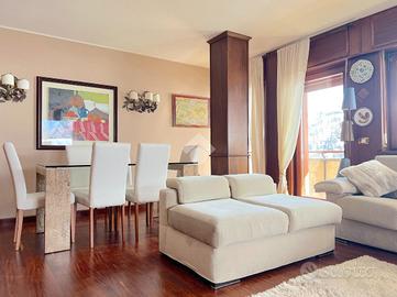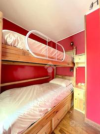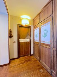 Dal corridoio e dal soggiorno si accede alla cucina dotata di ogni confort, piano a induzione, lavastoviglie e forno. La camera matrimoniale con vista è dotata di un'ampia cabina armadio, la camera con i letti a castello è dotata di portafinestra che da accesso ad un balconcino. Il bagno è finestrato di ampie dimensioni con box doccia e armadi su misura. Completa la soluzione un ampio posto auto .