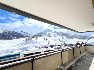 Sestriere - nel contesto della via Lattea con 400 km di piste, appartamento in vendita con vista spettacolare sulle montagne Olimpiche. L'immobile si sviluppa su una superficie commerciale di 85 mq circa, situato al quarto piano del condominio 'Carletta'. L'ingresso all'appartamento avviene su un disimpegno da dove abbiamo accesso ad un corridoio che porta all'ampio soggiorno con zona pranzo separata, reso luminoso dalle numerose finestre e dalla porta finestra che da accesso al balcone angolare con vista a sud sulle piste da sci e sulle montagne circostanti.