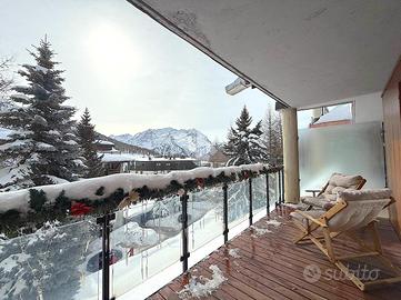 SESTRIERE - Nel rinomato complesso Conca Bianca sito in Sestriere, nel cuore delle Alpi piemontesi, proponiamo in vendita elegante trilocale completamente ristrutturato, ideale per chi desidera vivere la montagna in ogni stagione con comfort e praticità. L'ingresso all'appartamento avviene su un corridoio che conduce alla zona giorno, dove troviamo un soggiorno luminoso e accogliente, organizzato con una comoda zona divani e una distinta zona pranzo, perfetta per momenti conviviali con famiglia e amici. Dal soggiorno si accede direttamente a un ampio balcone panoramico, dal quale si può godere di una splendida vista aperta sulle montagne circostanti e grazie all'ampia dimensione ideale per pranzi all'aperto e momenti di relax. La cucina è funzionale e moderna, completa di lavastoviglie, forno e piastra a induzione, pensata per offrire massima praticità anche durante i soggiorni più lunghi. La zona notte ospita una spaziosa camera matrimoniale dotata di ampio armadio a muro e una cameretta con letto a castello, soluzione ideale per ospitare bambini o amici.Il bagno è dotato di vasca. Completano la proprietà un comodo posto auto riscaldato e due ski box, elementi fondamentali per chi ama sciare e desidera la massima comodità al rientro dalle piste.