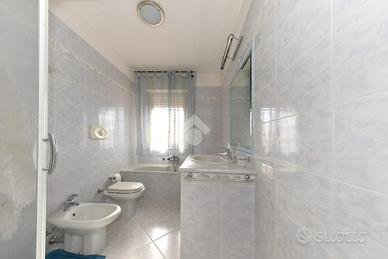 La zona notte si raggiunge tramite un comodo disimpegno e comprende una camera matrimoniale di generose dimensioni, una camera singola e un bagno finestrato completo di vasca e box doccia. Entrambe le camere hanno accesso ai balconi.